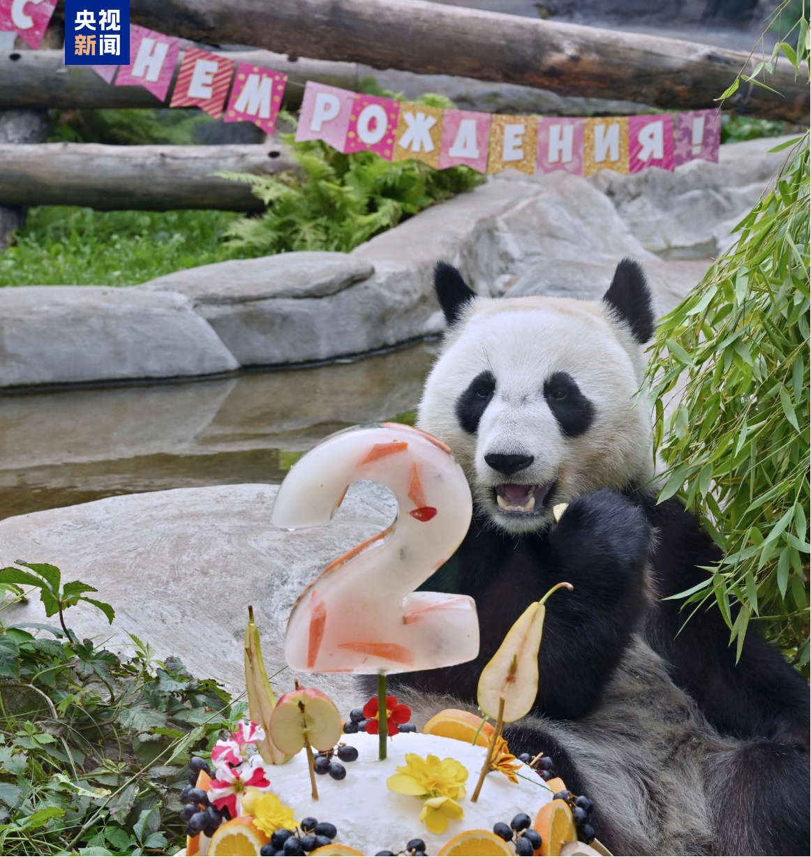8月24日是首只在俄出生大熊猫“喀秋莎”两岁的生日。在莫斯科动物园,“喀秋莎”收到了一个由竹材与树叶搭建的小屋,还有一个用竹子、水果和冰制成的生日蛋糕。
